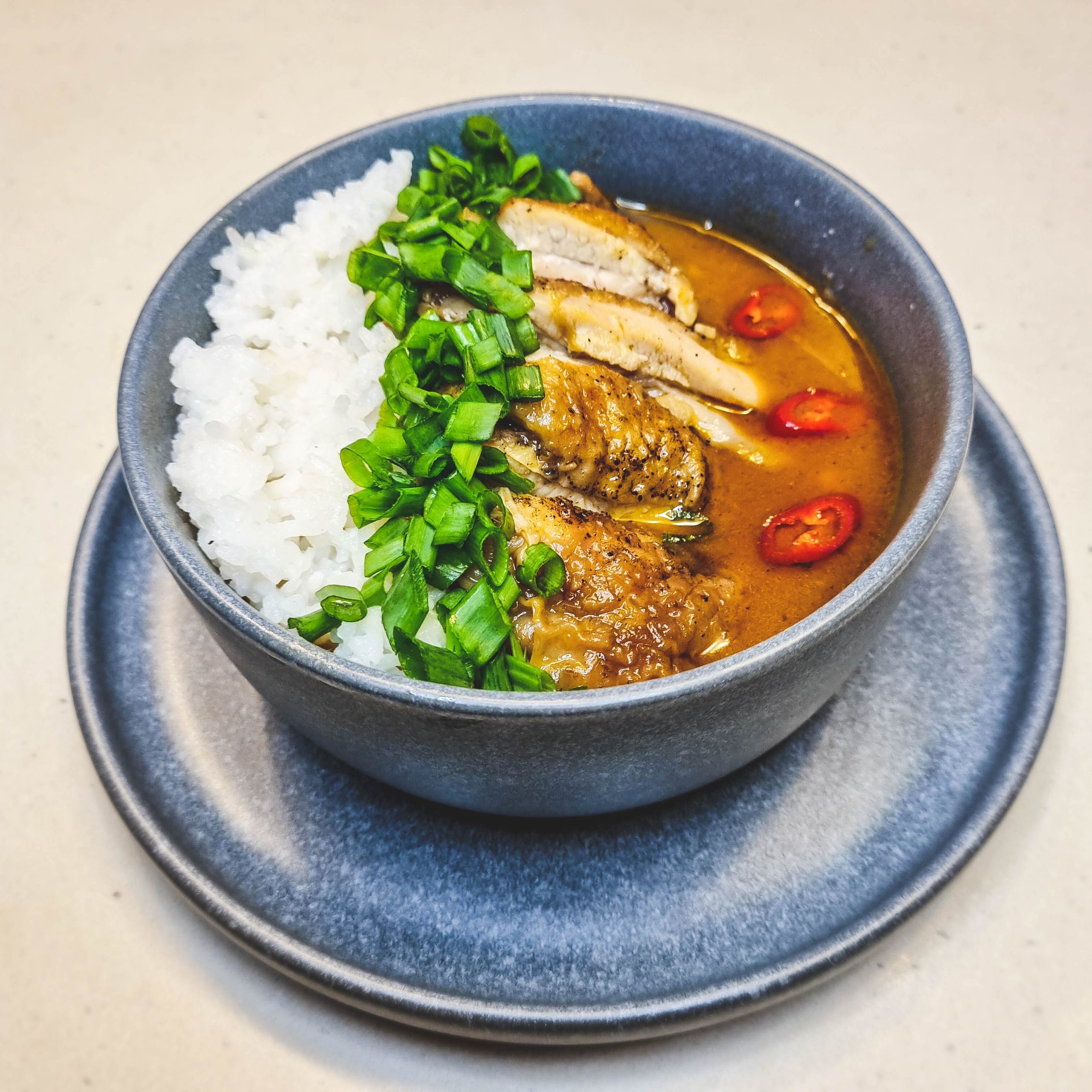 Pakaramelizuota Sojinė Vištiena Imbieriniame Sultinyje su Ryžiais