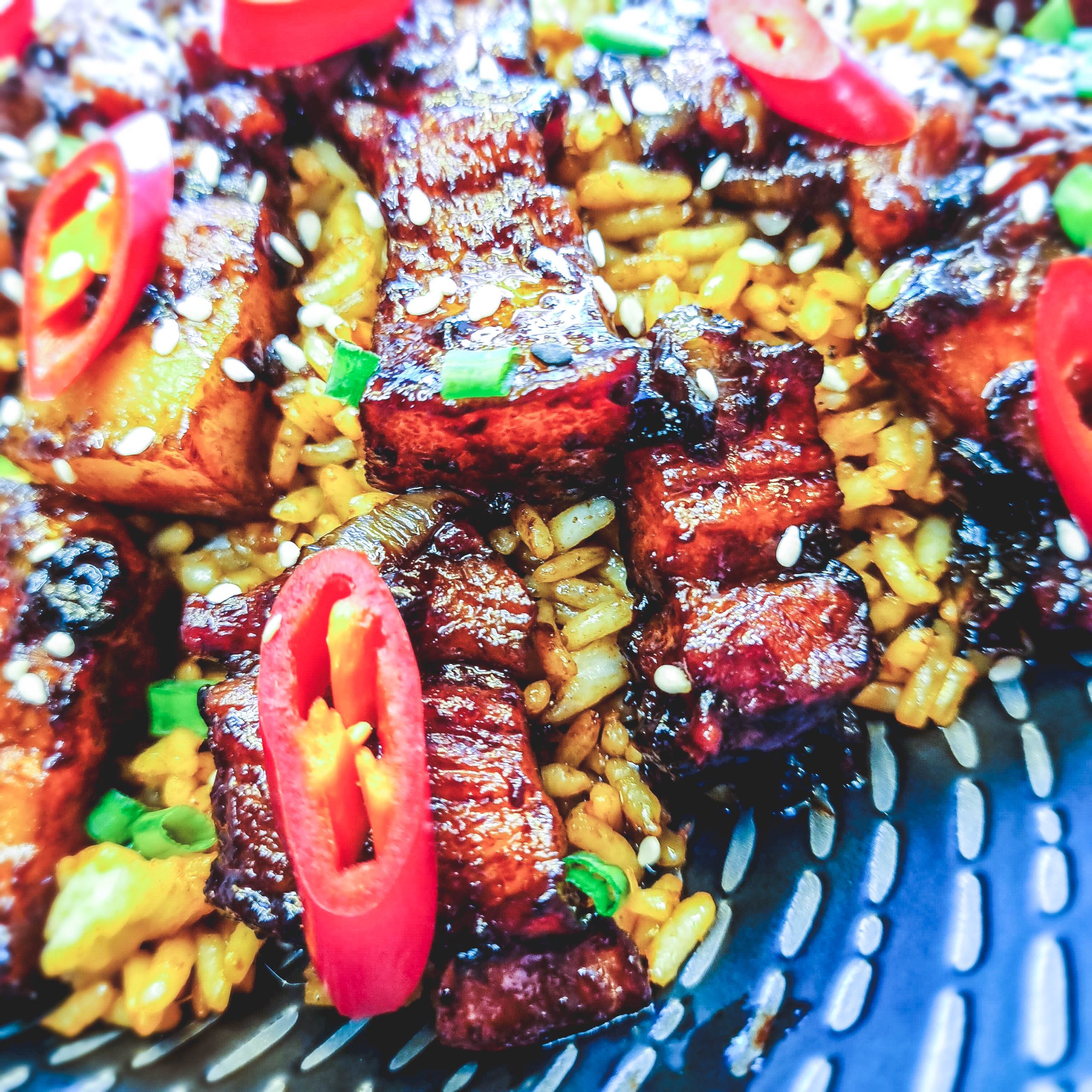 Saldžiai-aštri Kiaulienos Šoninė su Saldžiai-aštriais Ryžiais Kazane