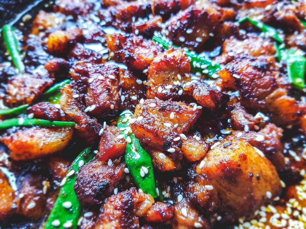 kiauliena,šoninė,bekonas,korėja patiekalai,azija patiekalai,aštrūs patiekalai,ketaus keptuvė