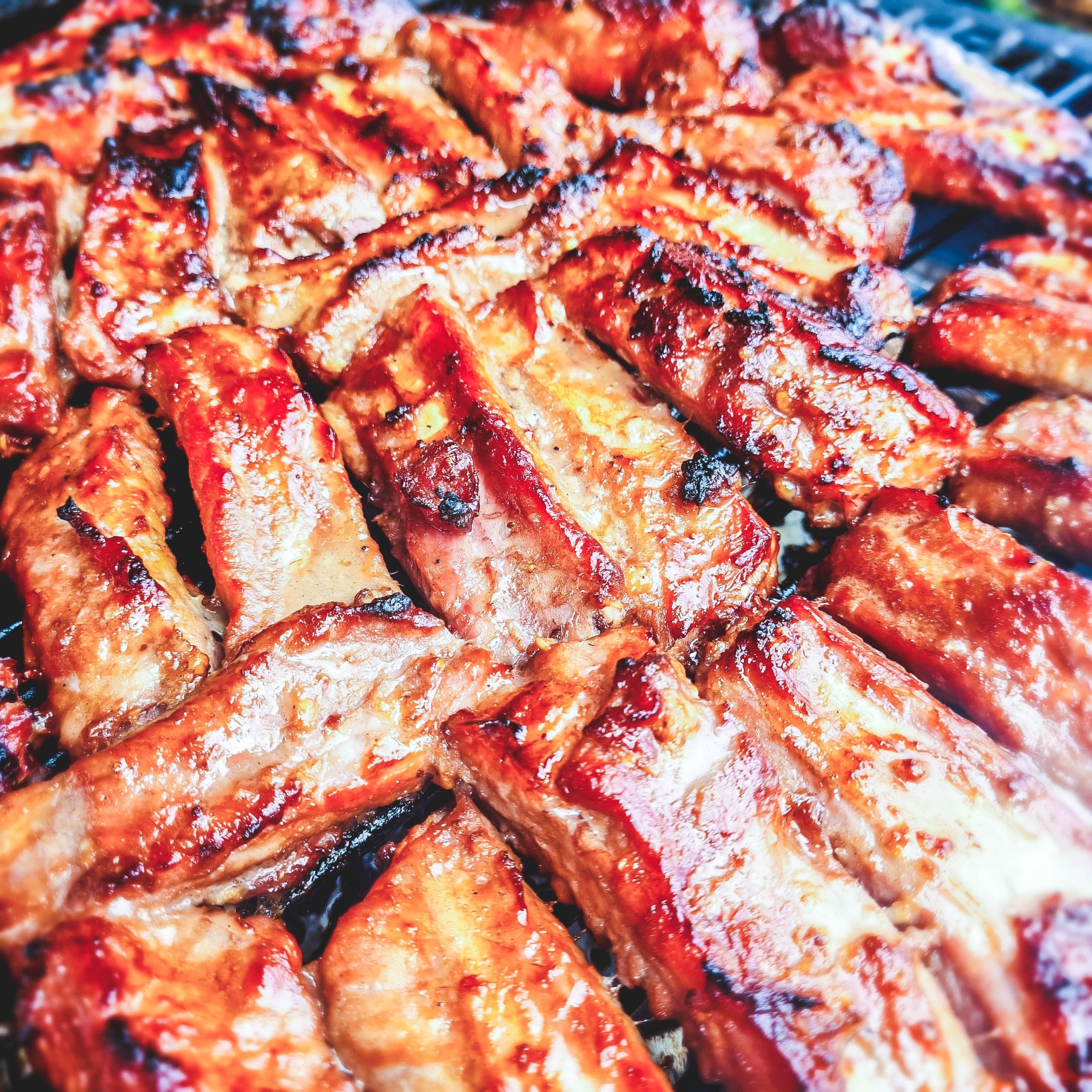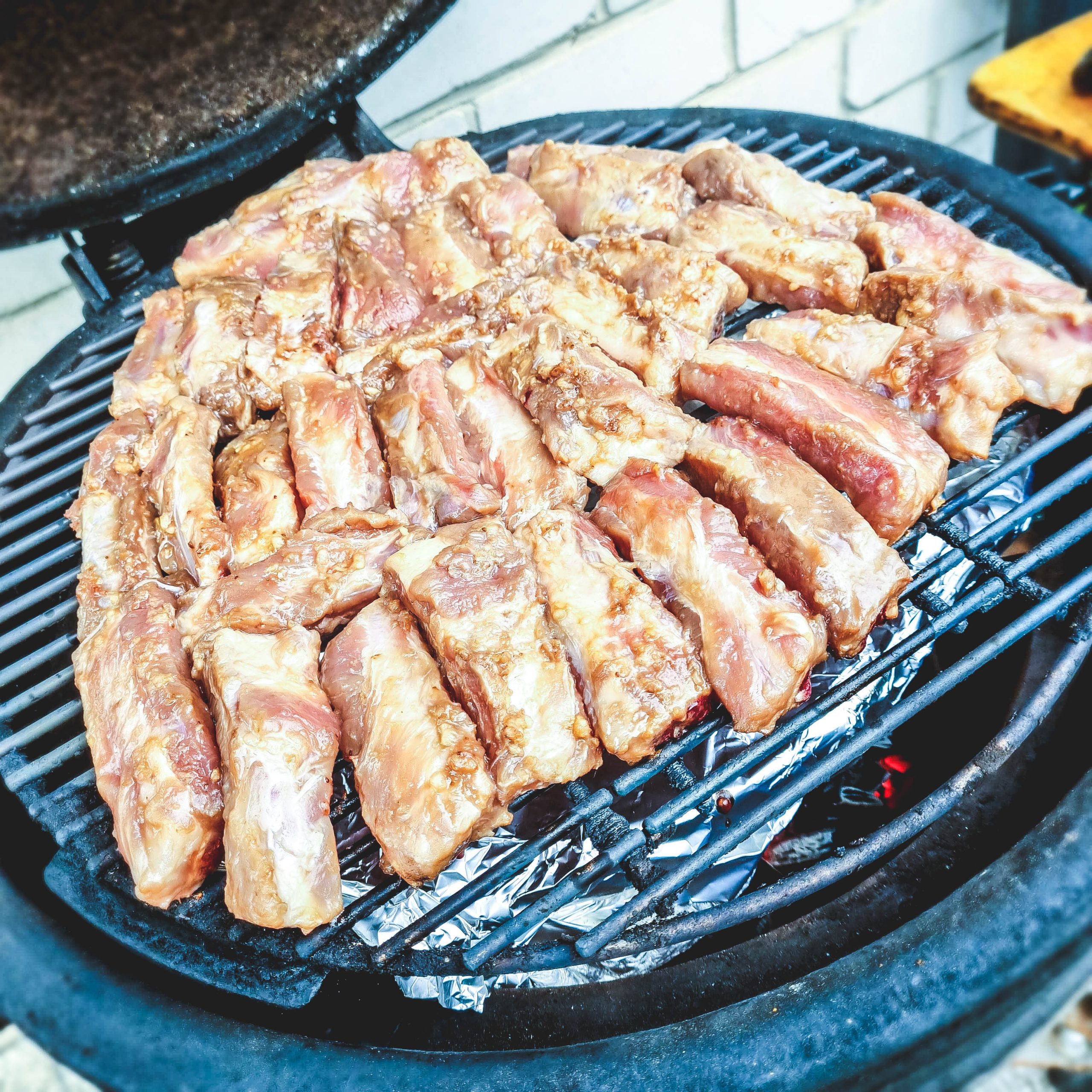 Šonkaulius išimam iš marinato. Marinatą pasieliakam. Išdėliojam šonkaulius ant grotelių ir kepam 20 min.