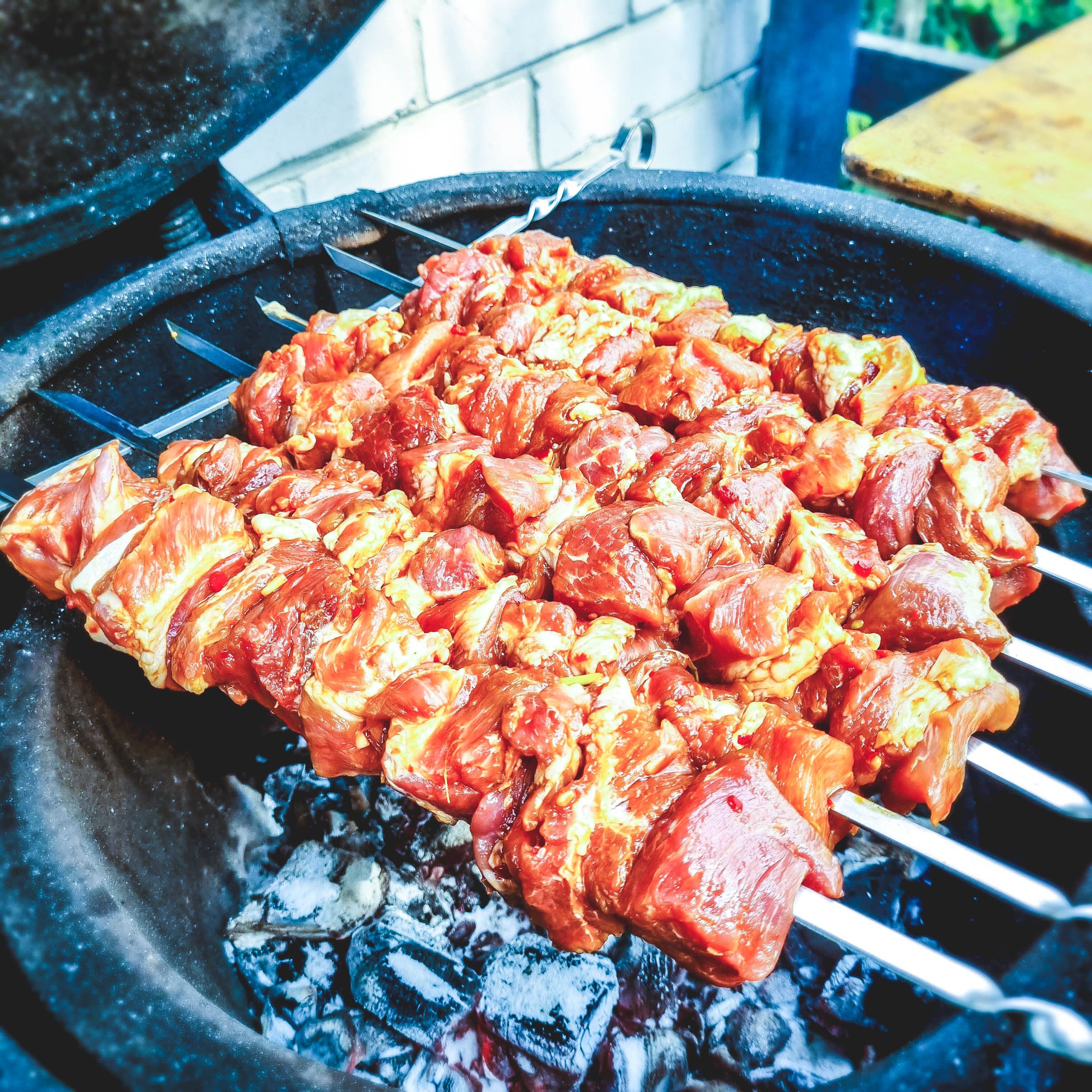 Į kepsninę įstatom groteles. Dedam puodą. Kepsninę uždarom. Paliekam šašlykus puode 10 min. pailsėti. traukiam lauk.
