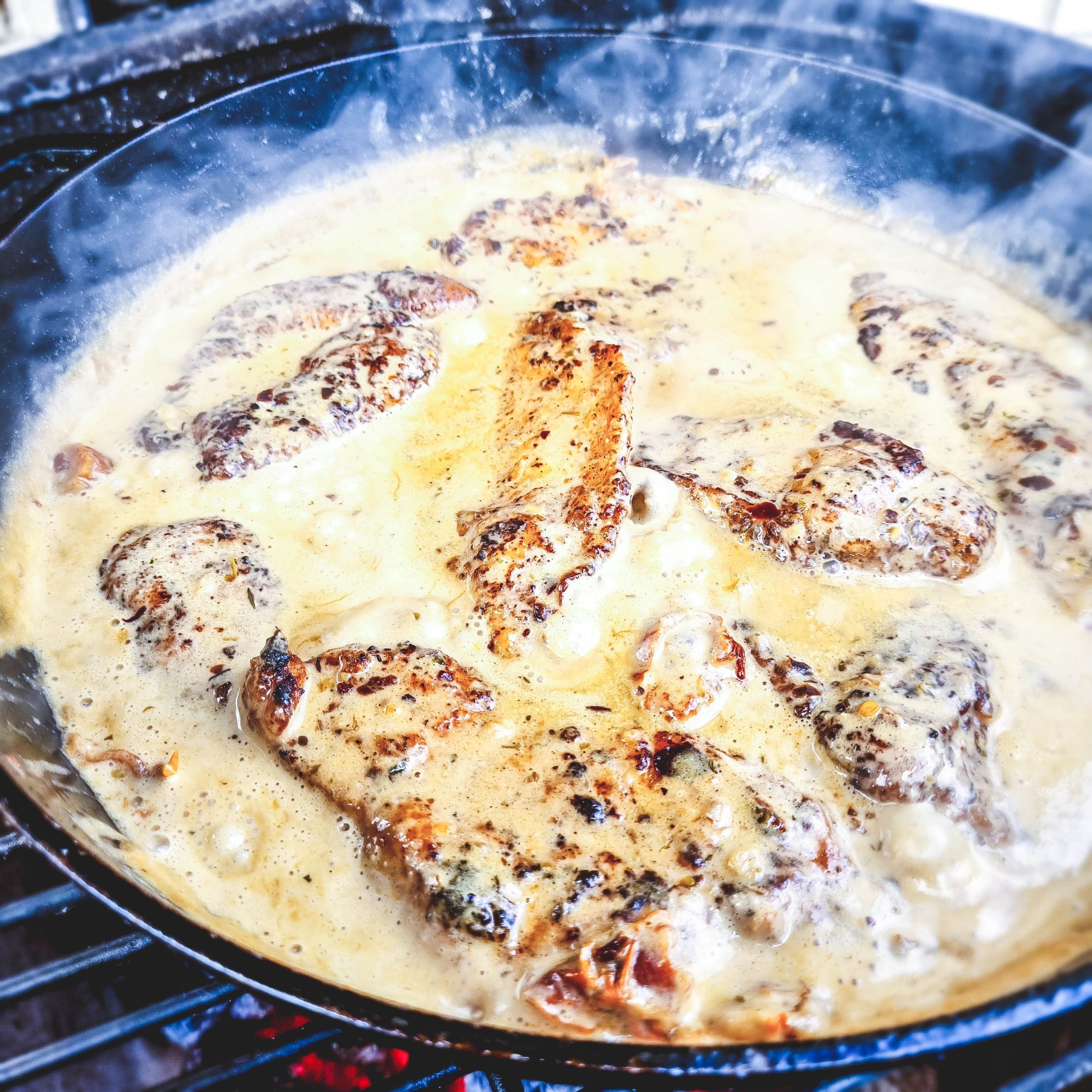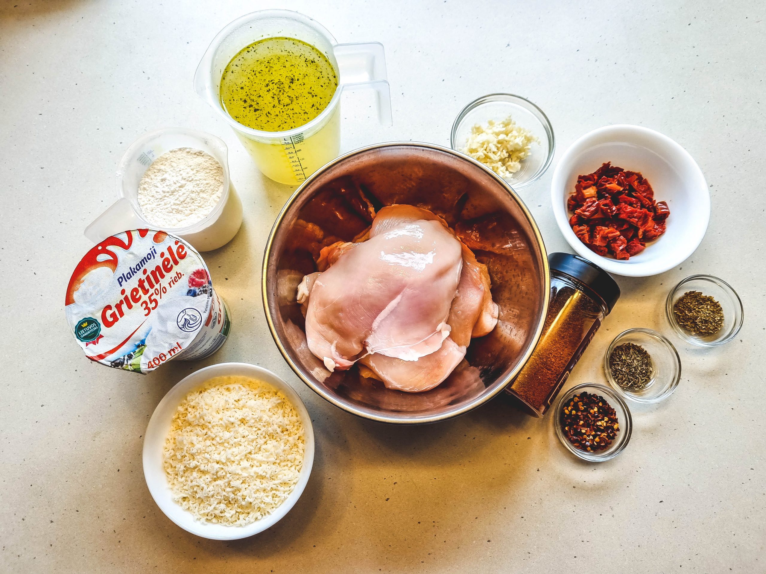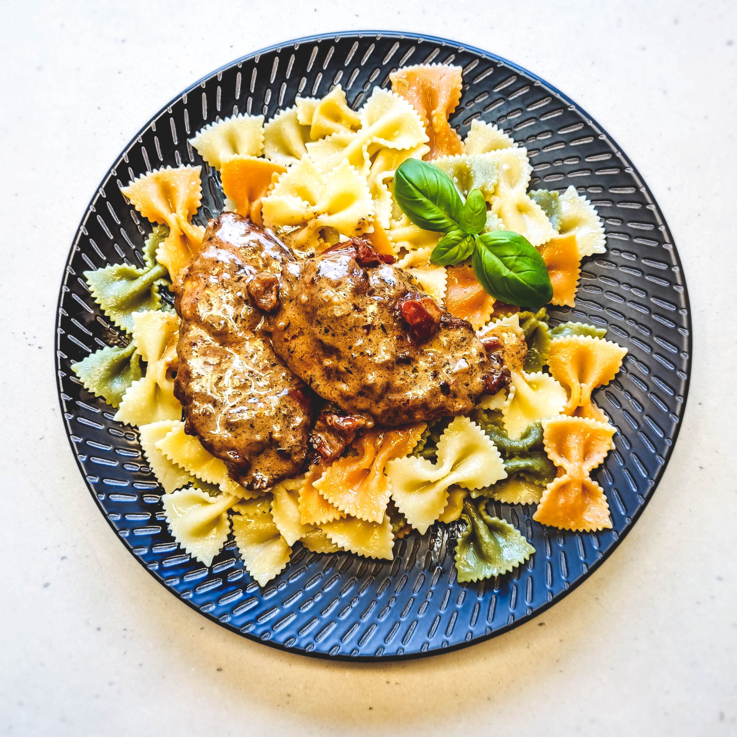 Vištienos krūtinėlės kepsneliai 🥩 apkepti miltuose ir patroškinti Grietinėlės 🍶 Parmidžano 🧀 ir Saulėje džiovintų pomidorų 🍅 padaže. Šeimynos prašymu - su spalvotais kaspinėliais 🎀🟢🎀🟡🎀 😄