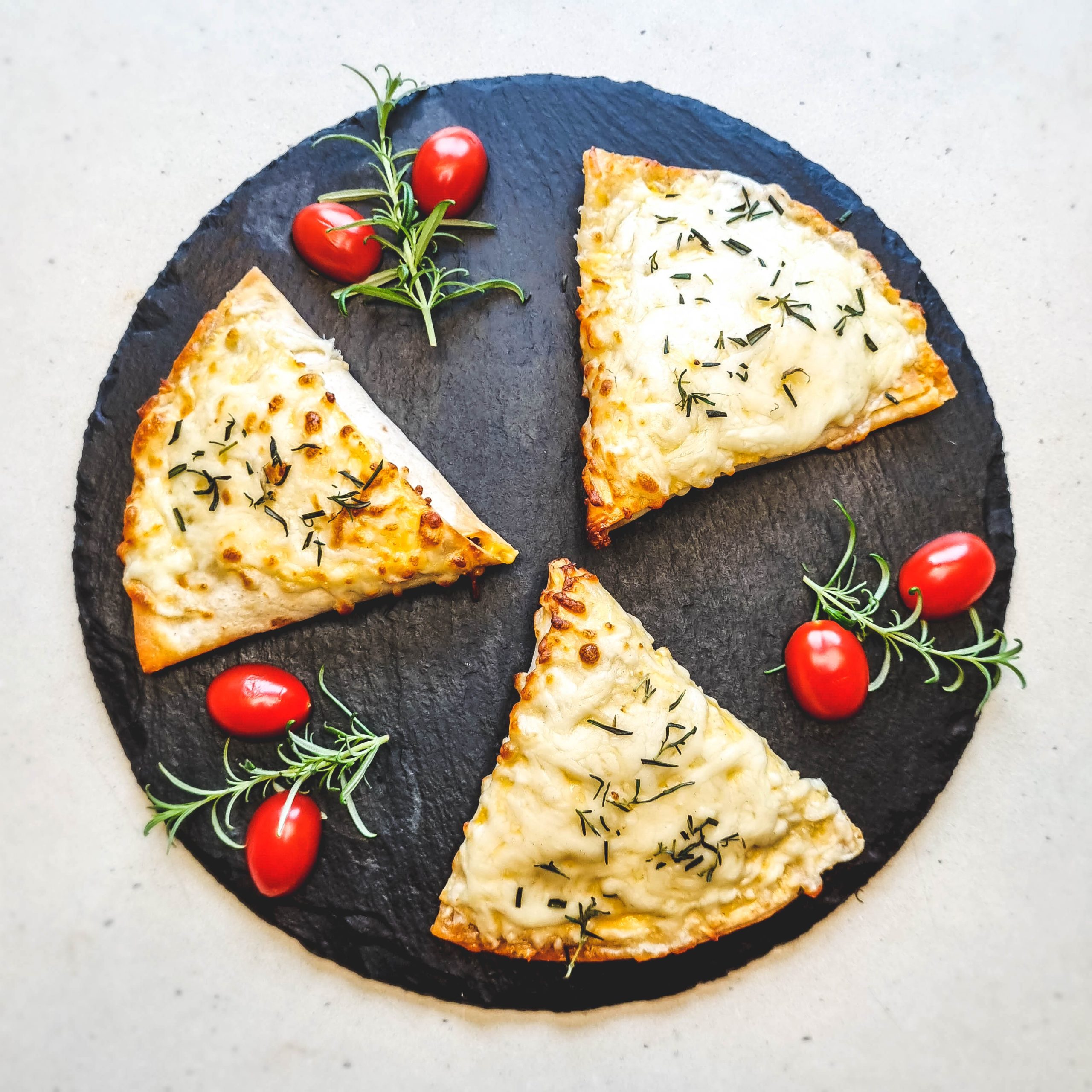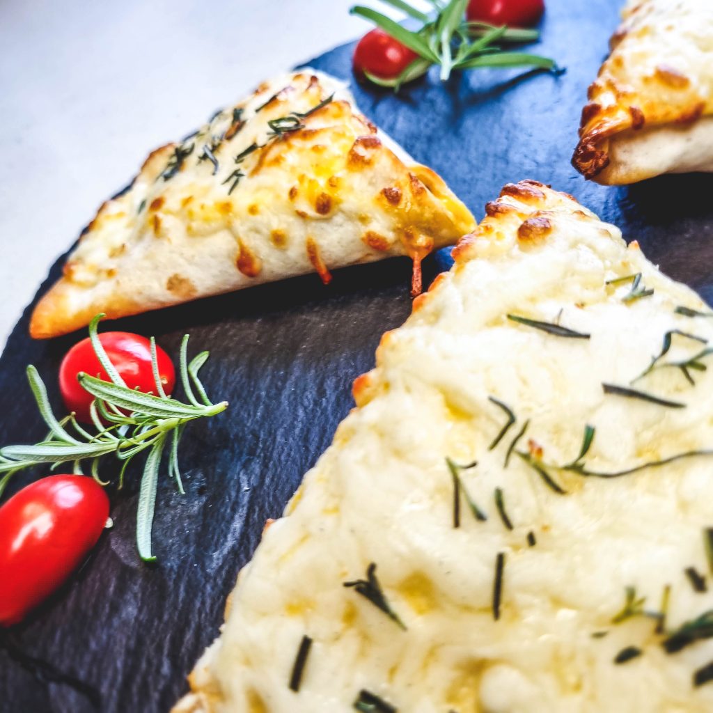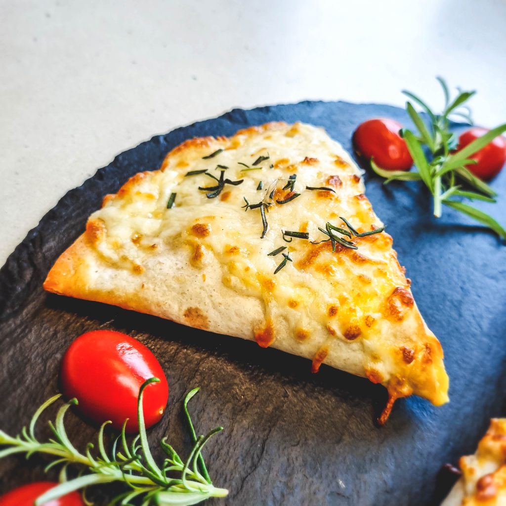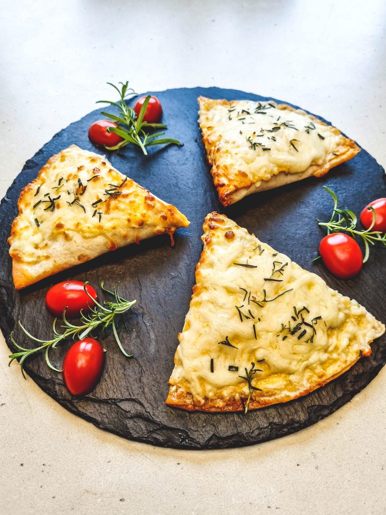 Tortilijų trikampius aptepam kiaušinio trynio plakiniu. Apibarstom Mozarella sūriu.