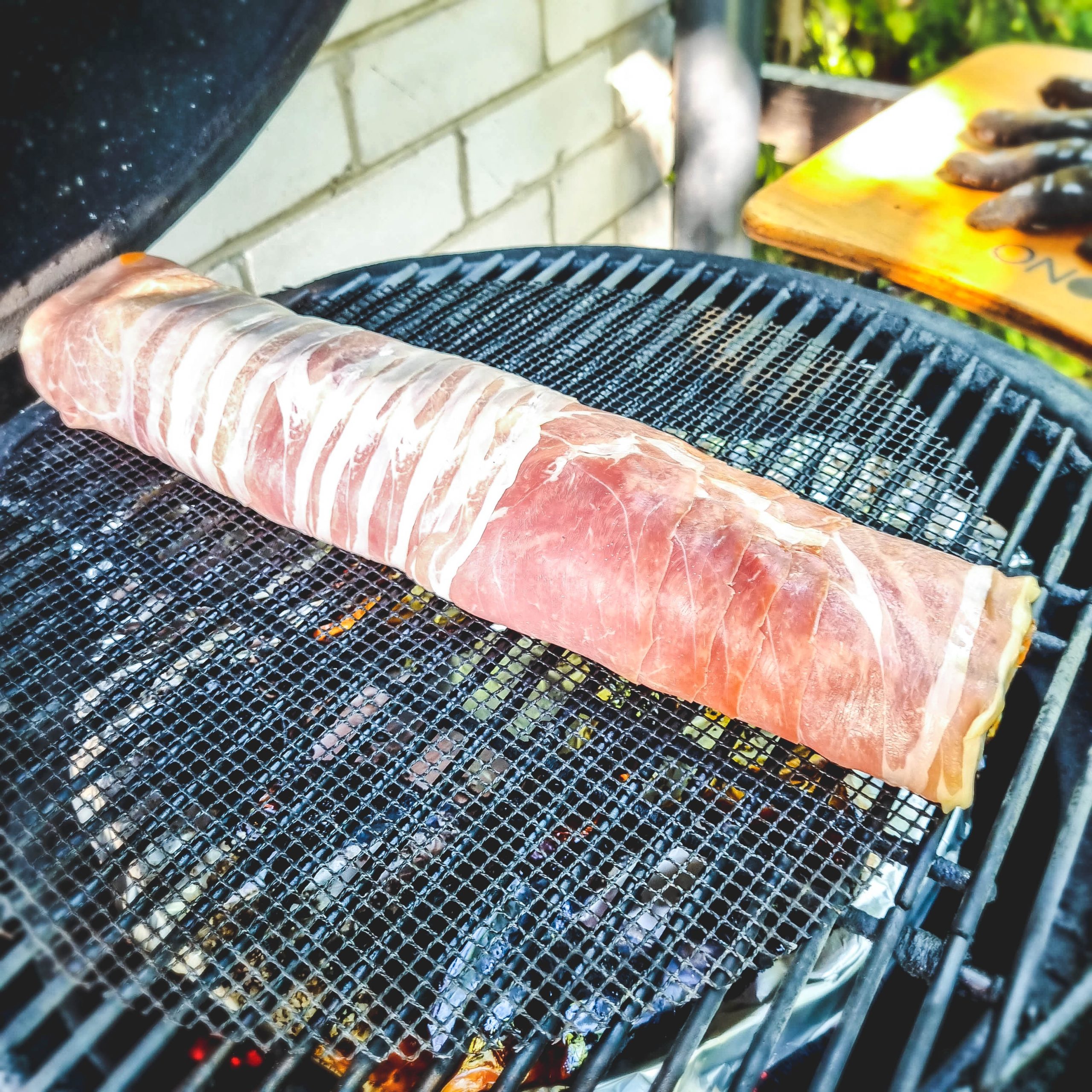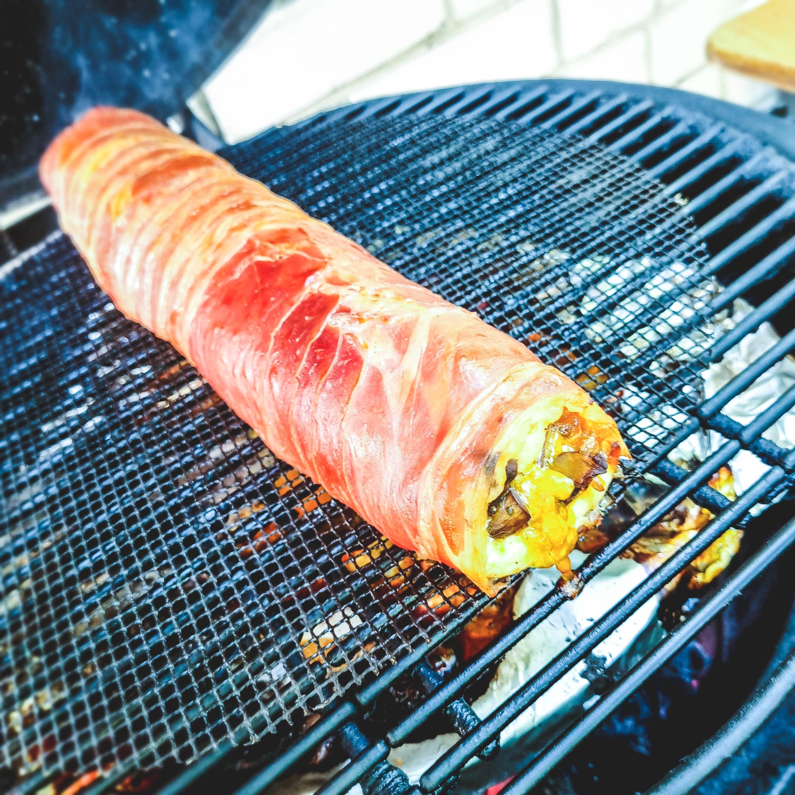 Kepsninę paruošiame netiesioginiam kepimui 180C temperatūroje. Dedam vyniotinį ir netiesioginėje kaitroje kepam 30min. iki vidinės 74C. Traukiam lauk.