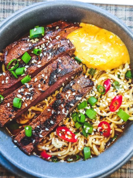 Greitas Korėjietiškas Aštrus Ramenas su Grilinta Jautiena ir Kreminiu Padažu