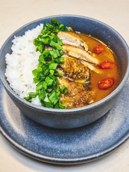 Pakaramelizuota Sojinė Vištiena Imbieriniame Sultinyje su Ryžiais